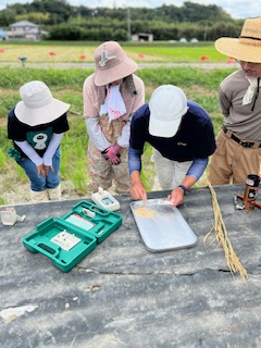 9月27日(土)朝方黒い雲が田んぼ上空を通り過ぎ、スタッフ一同雨が降るのではないかとヒヤヒヤしましたが、無事雨は降らずに雲がとおり過ぎ、講座開始するころにはさわやかな風がふき過ごしやすいお天気でした。