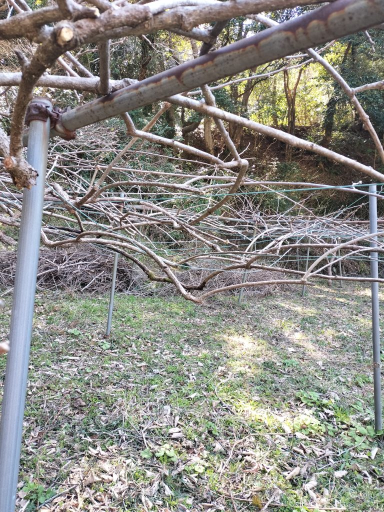1か月前までボーボーだったキウイ棚が、驚くほどスッキリしました。