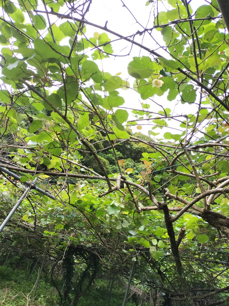 今回はサマータイムということで朝7時から、いつも以上に澄んだ空気の中での作業開始となりました。真夏でもキウイ棚の下は、生い茂る葉のおかげで日陰が多く比較的作業がしやすい環境です。しかし、この生い茂る葉をしっかり剪定しないと、実の生育に影響するということなので、収穫後からの課題となりそうです。